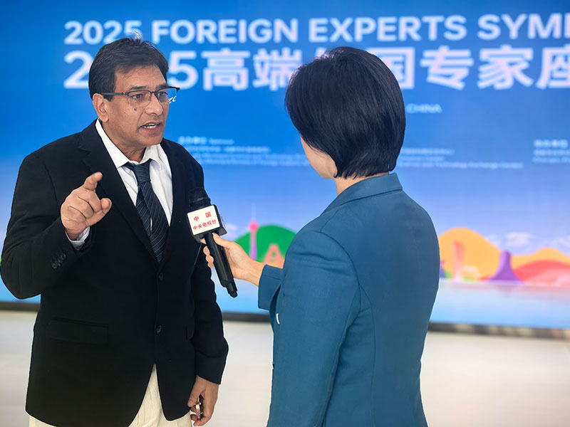 中国科学院高能物理研究所访问教授Munawar Iqbal(巴基斯坦籍)接受中央电视台记者采访